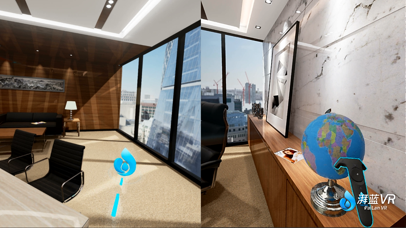 总裁办公室(president Office),由南京湃蓝信息科技有限公司基于的UnrealEngine(虚幻)4引擎开发的精品室内空间VR互动体验。包括各类可拾取的物品,可替换的物体材质,可旋转的座椅,可开关的房屋大门,可转动的地球仪等。